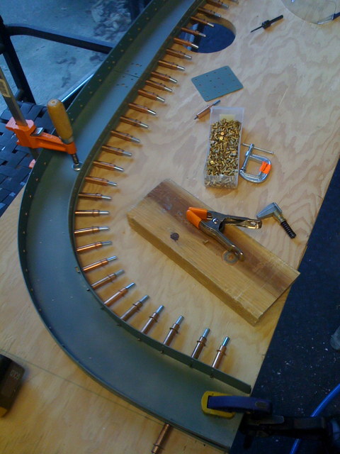 When you’re done, you get this. Forward part is all flush AN rivets, aft is CS4-4 blind rivets.